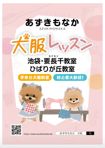 詳しくはこちら可愛いデザインがいっぱいの「花のん」オリジナル犬服を学ぶことができる教室!